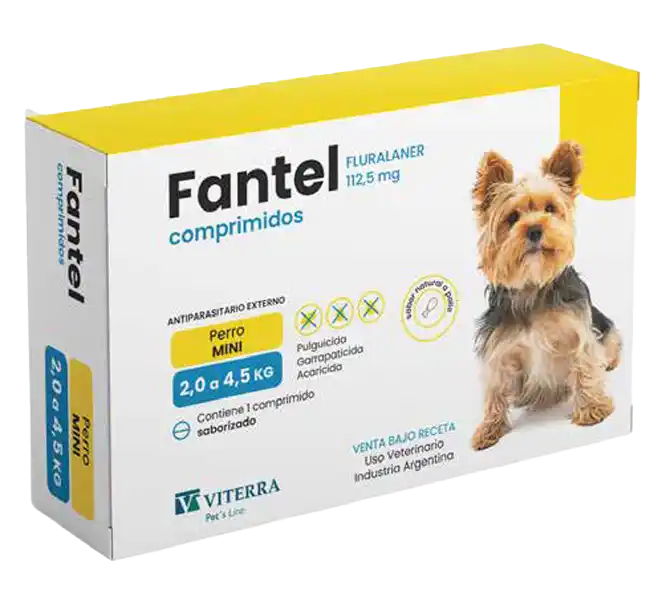 - Perro Mini: 1 pipeta de 0,45 ml (Fluralaner 112,5 mg) para perros de 2,0–4,5 kg de peso.