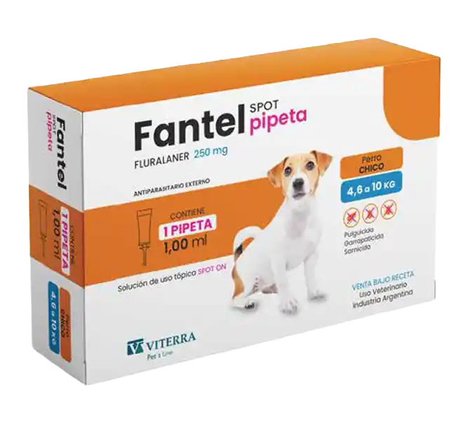 - Perro Chico: 1 pipeta de 1,00 ml (Fluralaner 250 mg) para perros de 4,6–10 kg de peso.